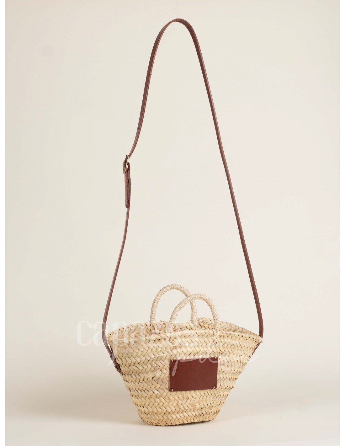 Capazo con asa de pita y de cruzar en piel + chapón pequeño