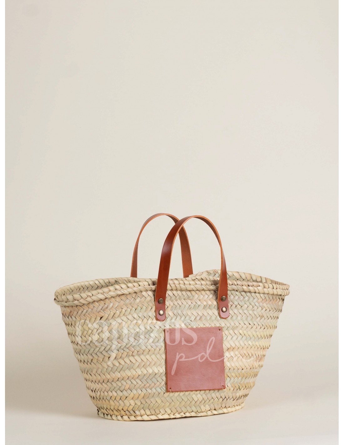 Capazo con asas de mano en piel + chapón mediano