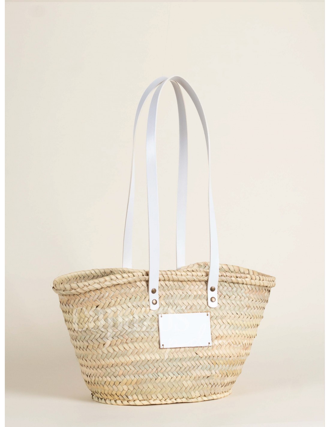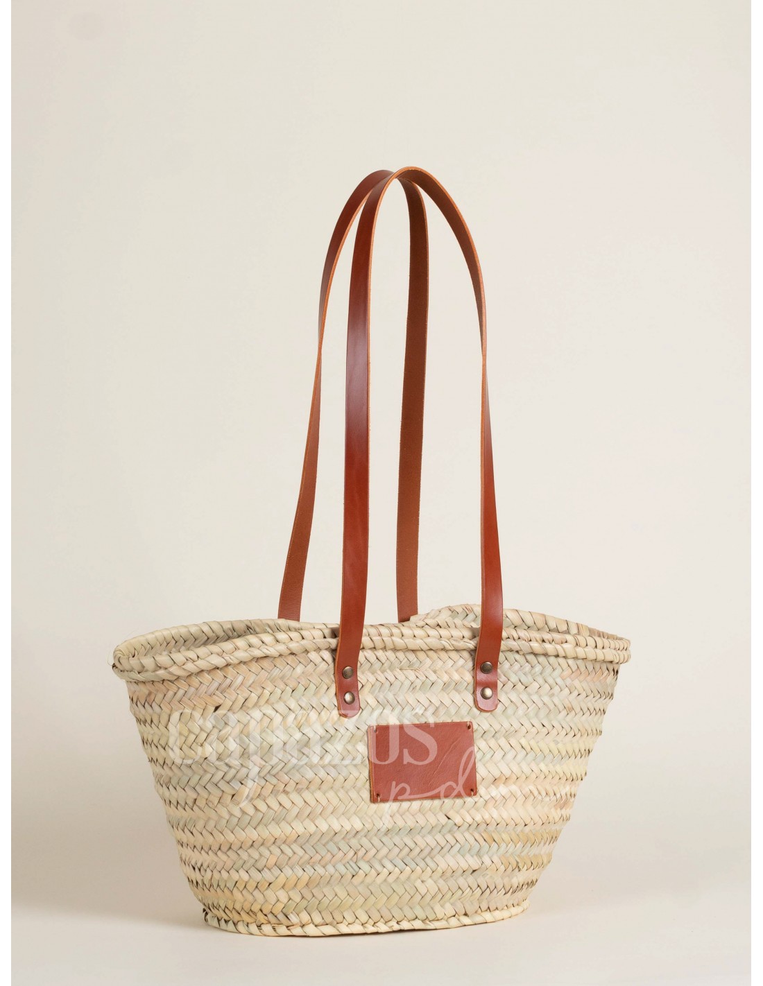 Capazo con asas de hombro en piel + chapón pequeño