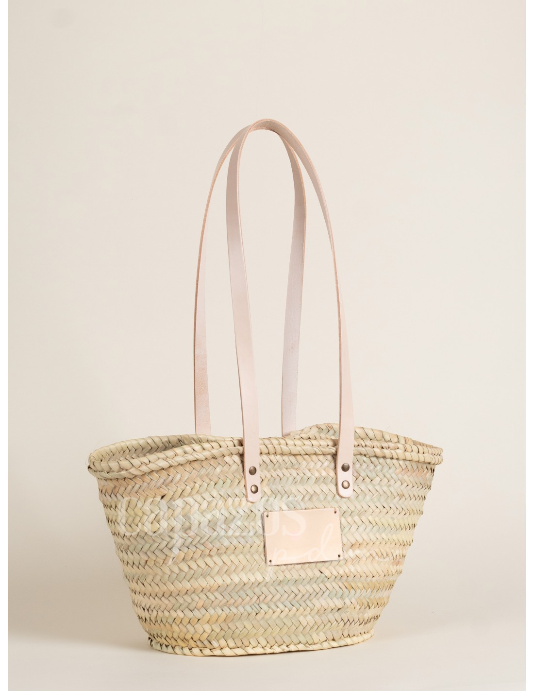 Capazo con asas de hombro en piel + chapón pequeño