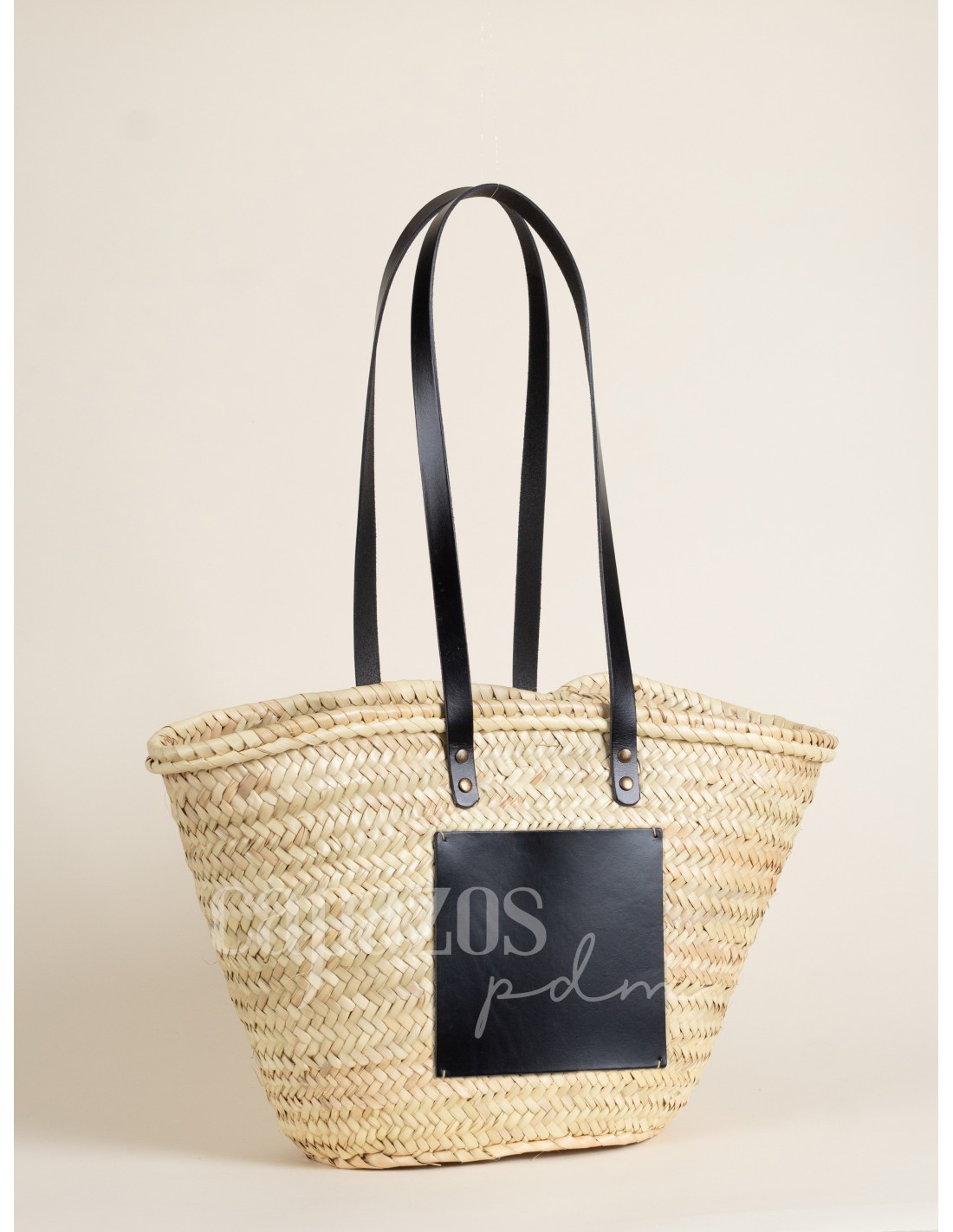 Capazo con asas de hombro en piel + chapón grande