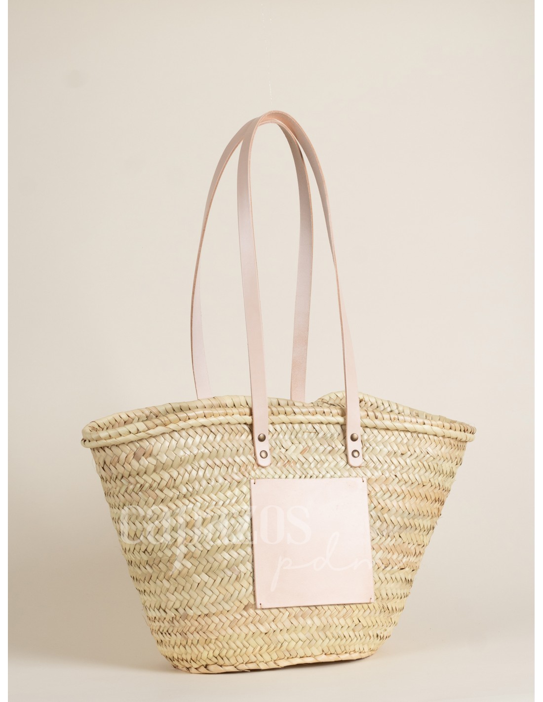 Capazo con asas de hombro en piel + chapón grande