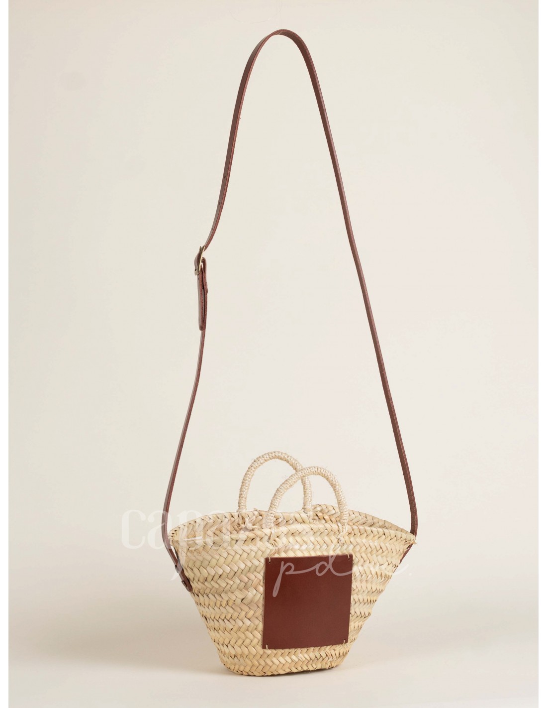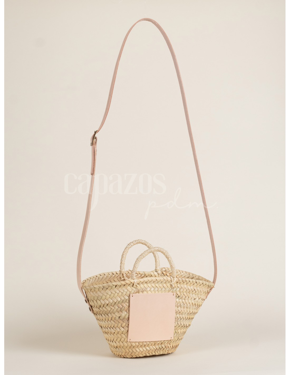 Capazo con asa de pita y de cruzar en piel + chapón mediano