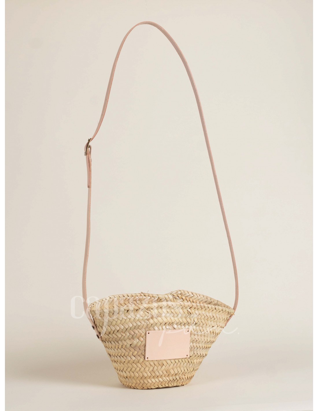 Capazo cerrado con cremallera, tejido con palma natural y asa de cruzar en piel con hebilla para regular, con posibilidad de personalización.