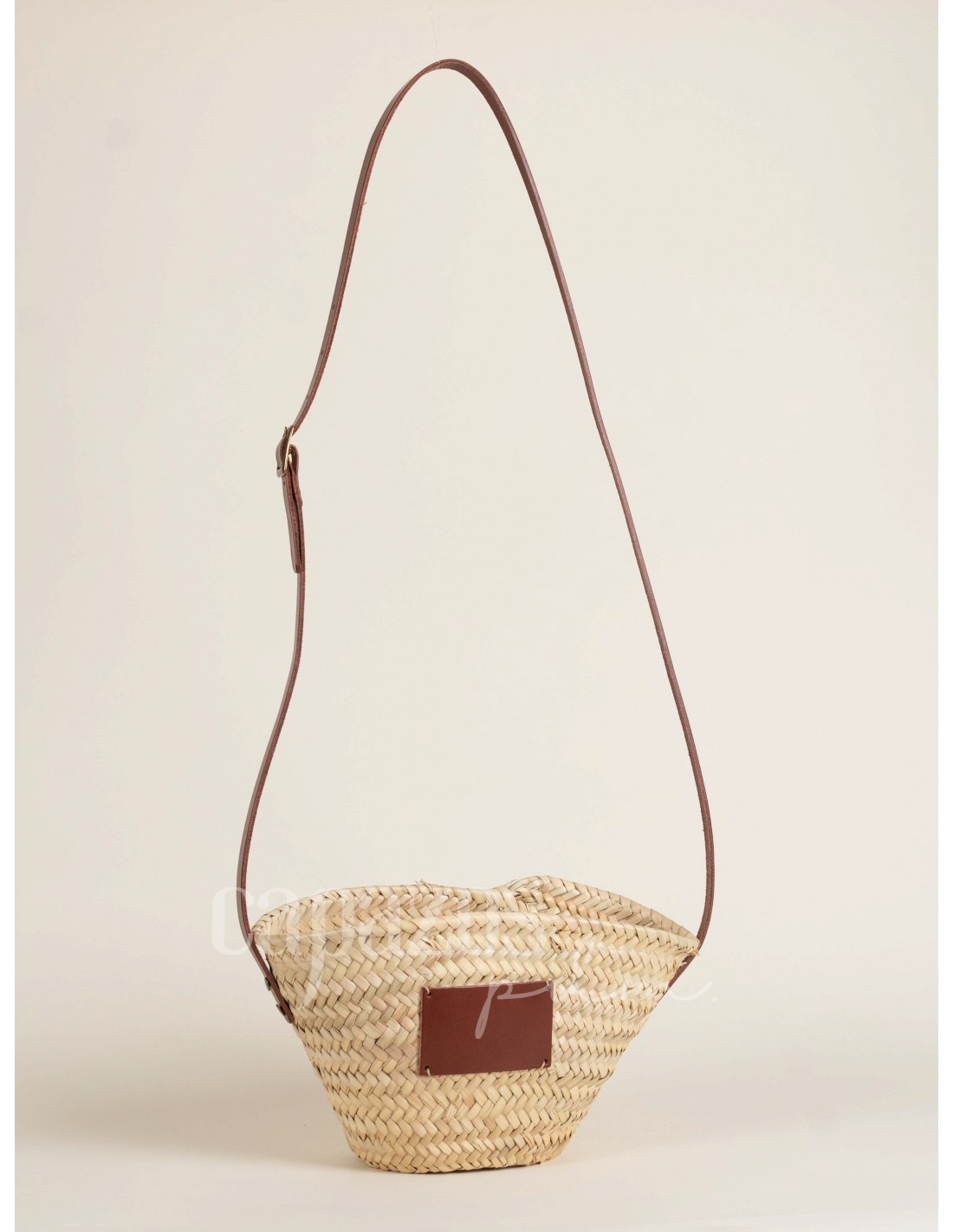 Capazo cerrado con cremallera, tejido con palma natural y asa de cruzar en piel con hebilla para regular, con posibilidad de personalización.