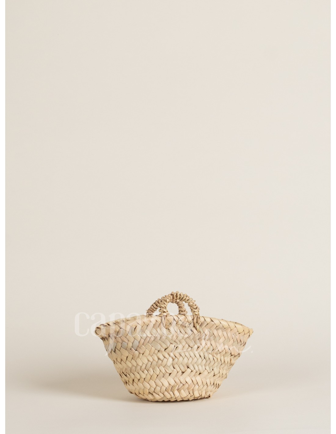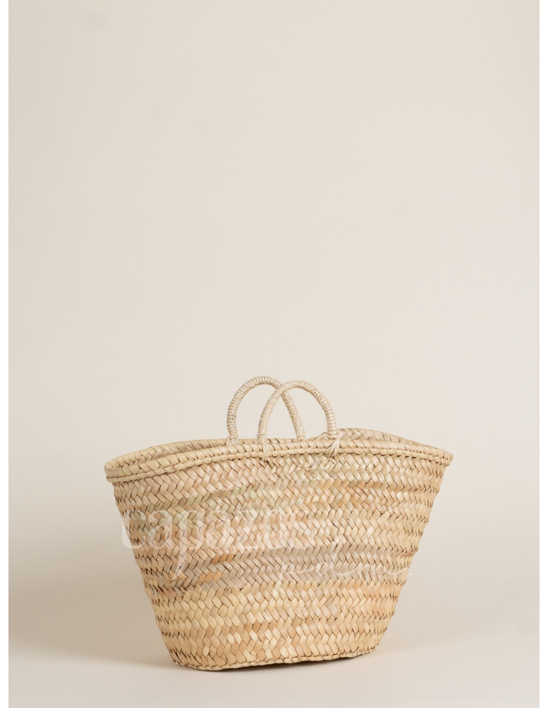 Capazo tejido a mano con palma natural y asas de pita de fibra vegetal.
