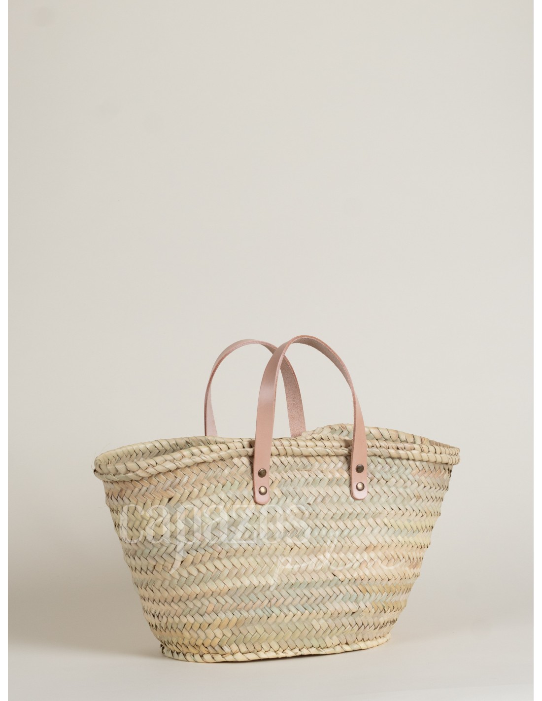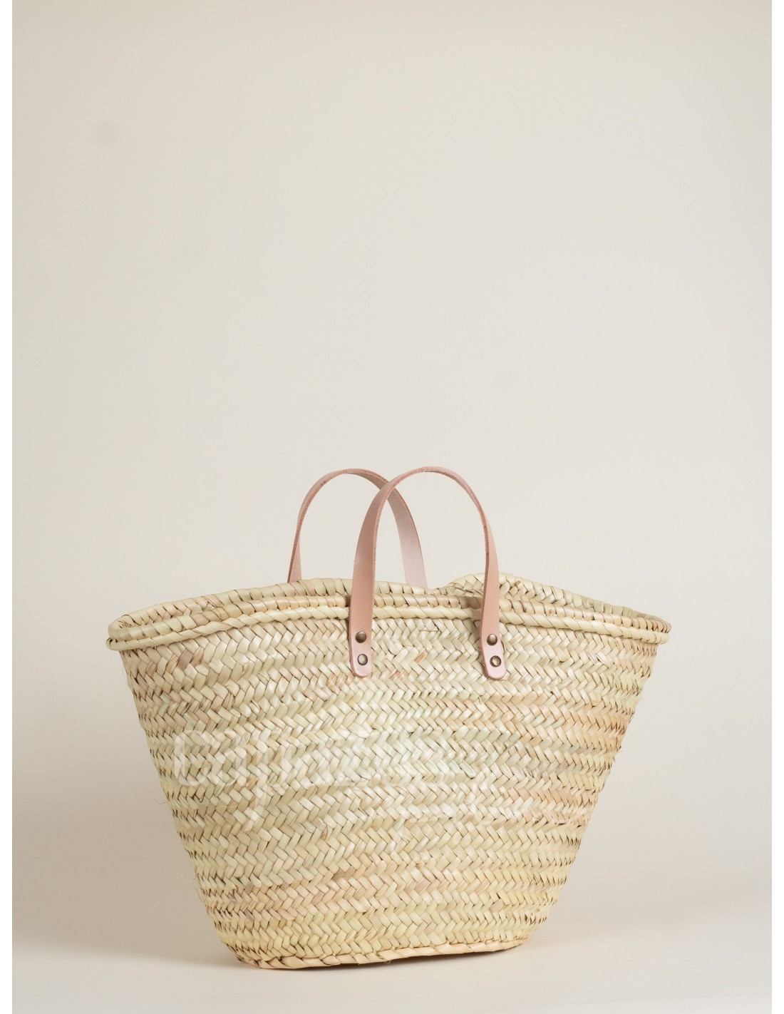 Capazo tejido a mano con palma natural y asas de mano en piel de vaquetilla. Las asas son de 40x1.7 cm.