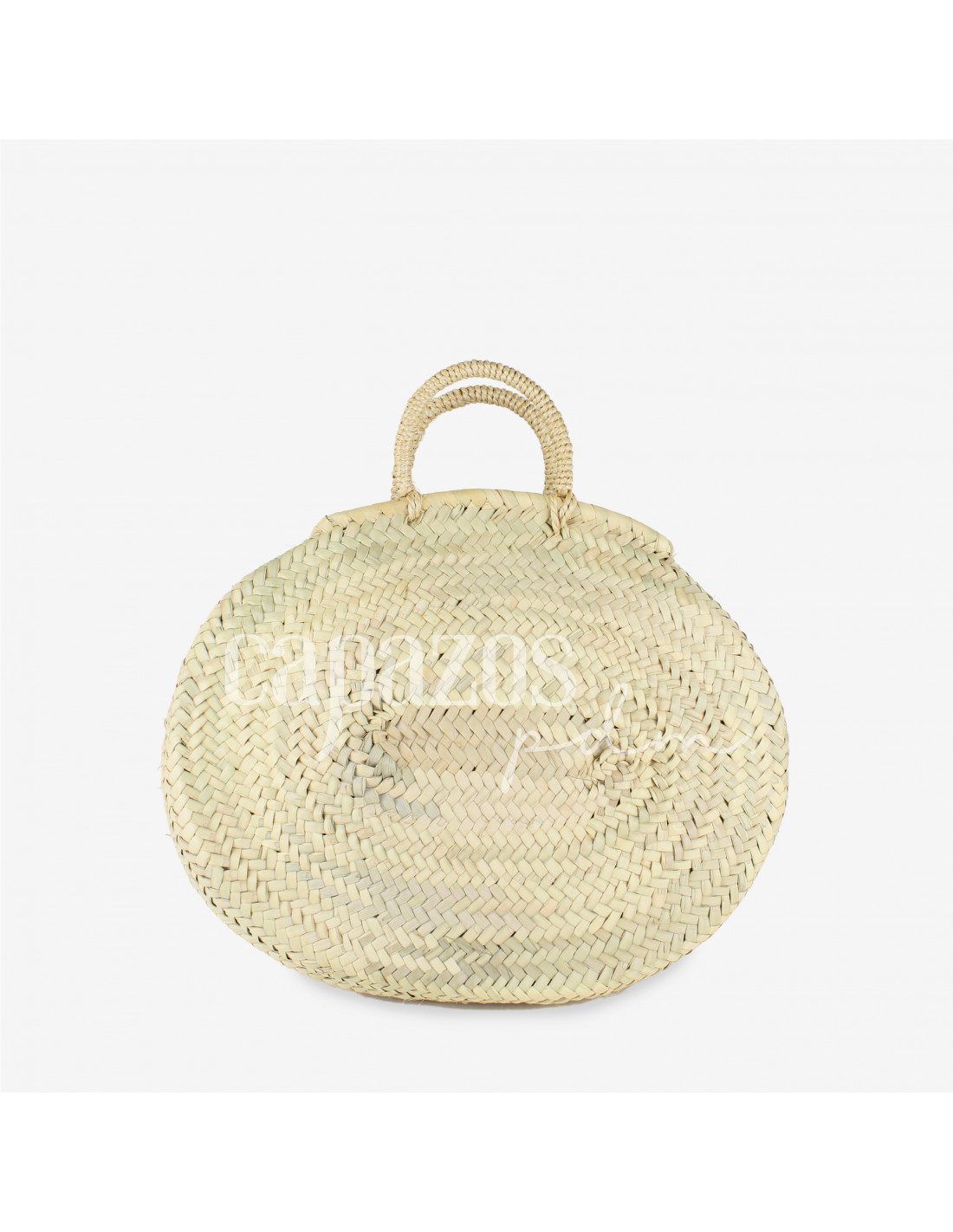 Este capazo está tejido a mano de forma artesana con forma ovalada y asas de pita. Su forma hace que sea uno de los más especiales y diferentes para personalizar.
